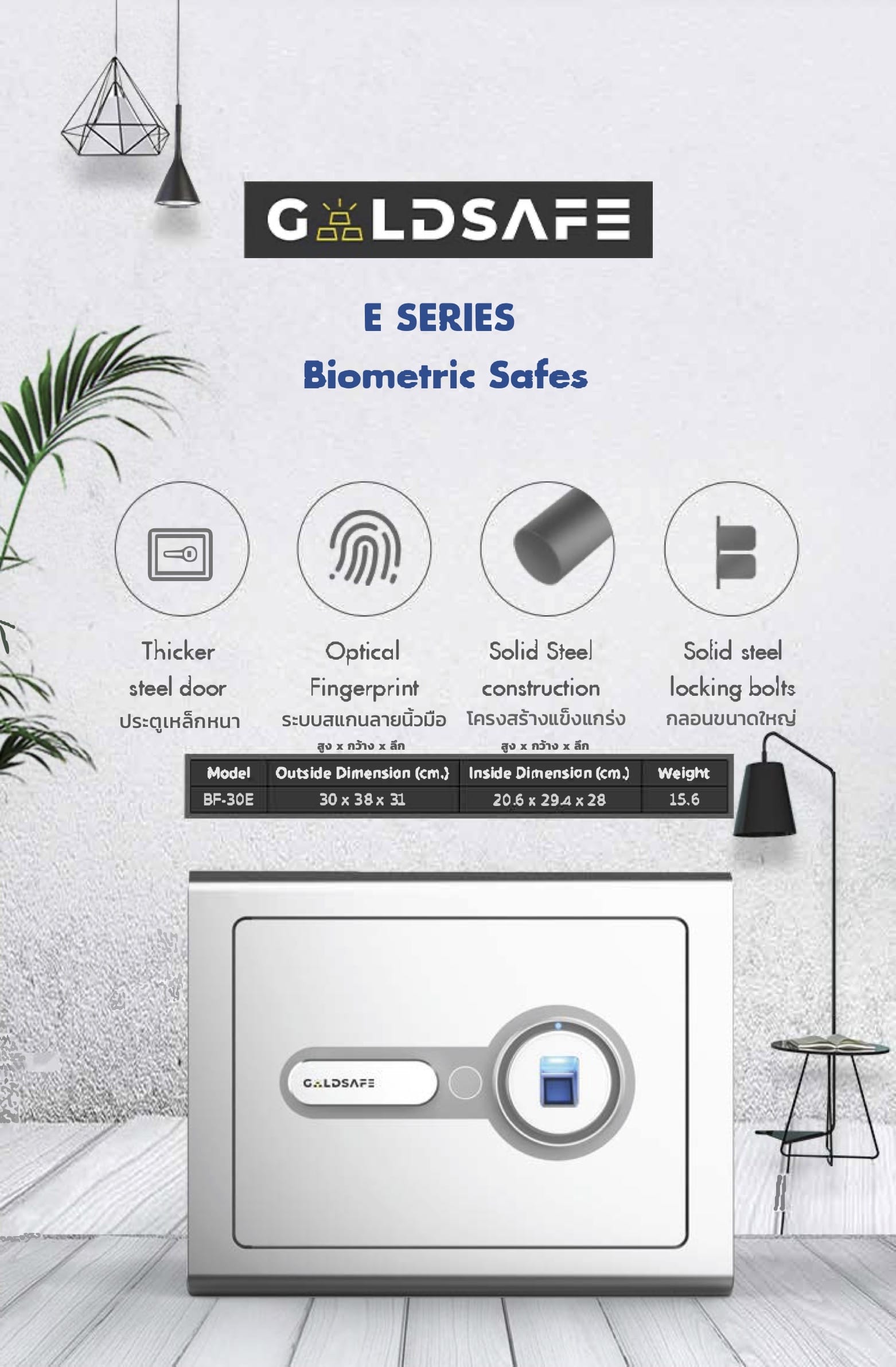 Goldsafe ตอบโจทย์การใช้งานยุคใหม่ด้วยระบบที่ทันสมัย โดดเด่นด้วย Easy & Smart Security ทั้งการสแกนลายนิ้วมือที่รวดเร็ว และระบบล็อกอัตโนมัติเมื่อมีการกดรหัสผิด